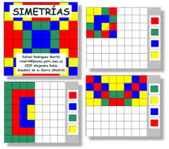 simétricas si al doblar el papel por el eje de simetría, las figuras coinciden. Aquí no podemos comprobarlo doblando un papel pero sí podemos crear la figura simétrica de la dada. Se trata de un paquete JClic con 12 actividades estructuradas en tres niveles de dificultad. Mejor que empecéis por el nivel 1 para ir practicando. Después seguid con los otros dos niveles. Os gustarán. Clic en la imagen para empezar.